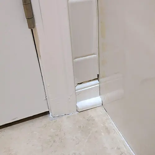 This was an old bathroom and the way it was built showed several errors on the tile, trim, drywall, and plumbing.