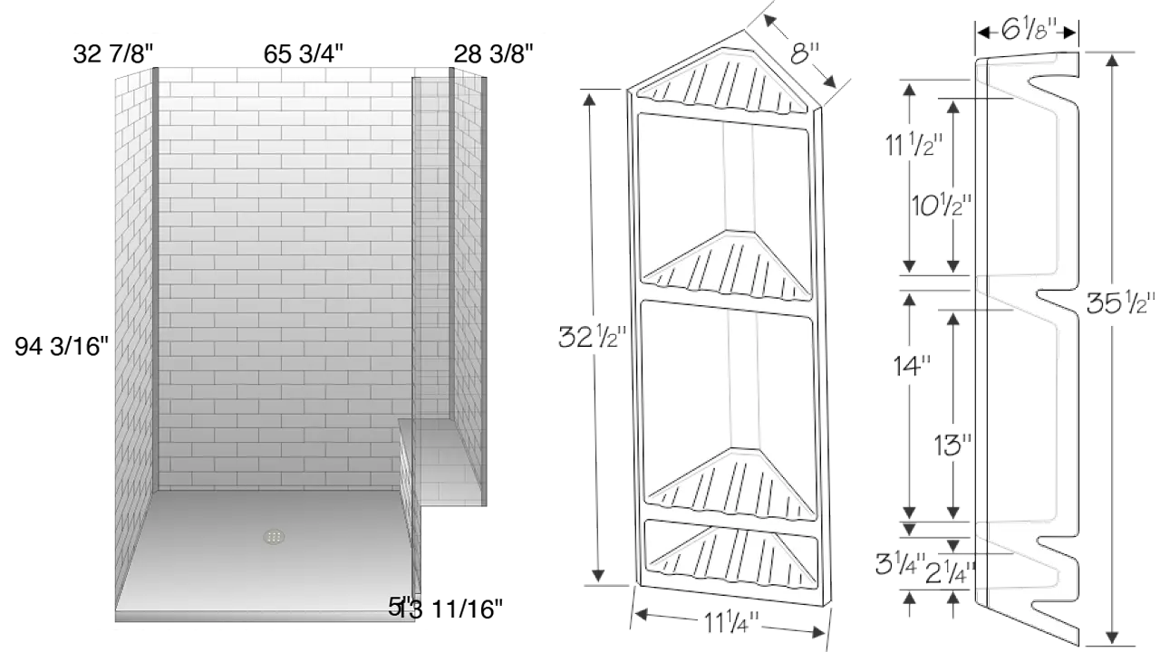 - Install floor to ceiling Onyx shower with bench